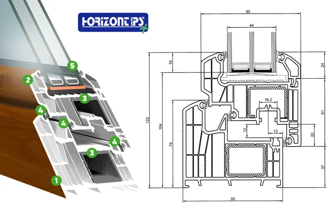 Naše sedmikomorová plastová okna TSH PLAST vyrábíme z moderního profilového systému HORIZONT PS penta plus vlastní výroby. Právem jsou proto naše okna označována jako poctivá česká okna.